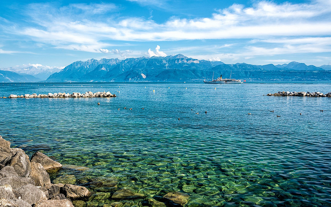 Осмотрим ее правый берег и поднимемся в Старый город. Остановимся около знаковых достопримечательностей: Стена Реформации, собор Святого Петра и фонтан Же-До и увидим кристально-чистое озеро Леман.